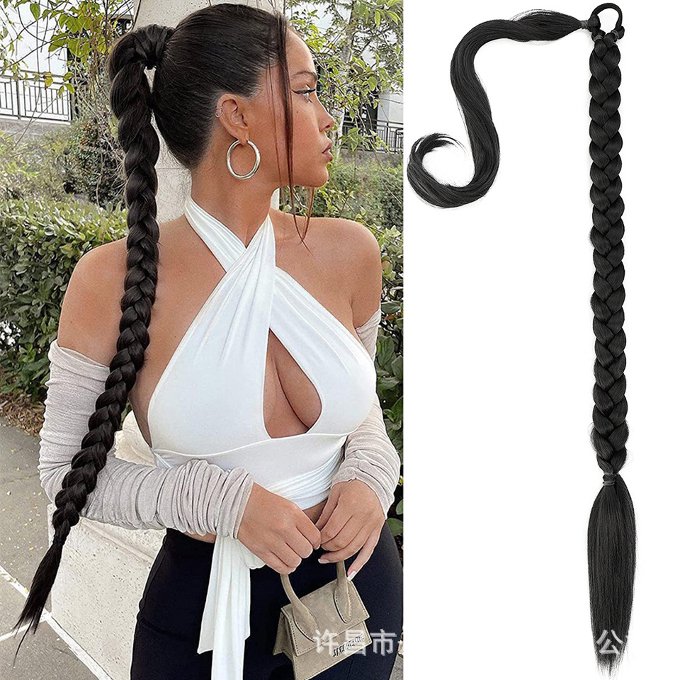 Cross-border European and American wig braid straight hair can be woven winding ponytail ladies hair length ponytail braid