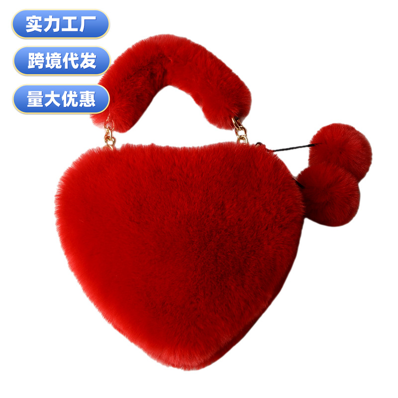 Cross-Border E-Commerce New Handbag Plush Love Bag Hand-Held Heart Bag Chain Bag Shoulder Crossbody Bag
