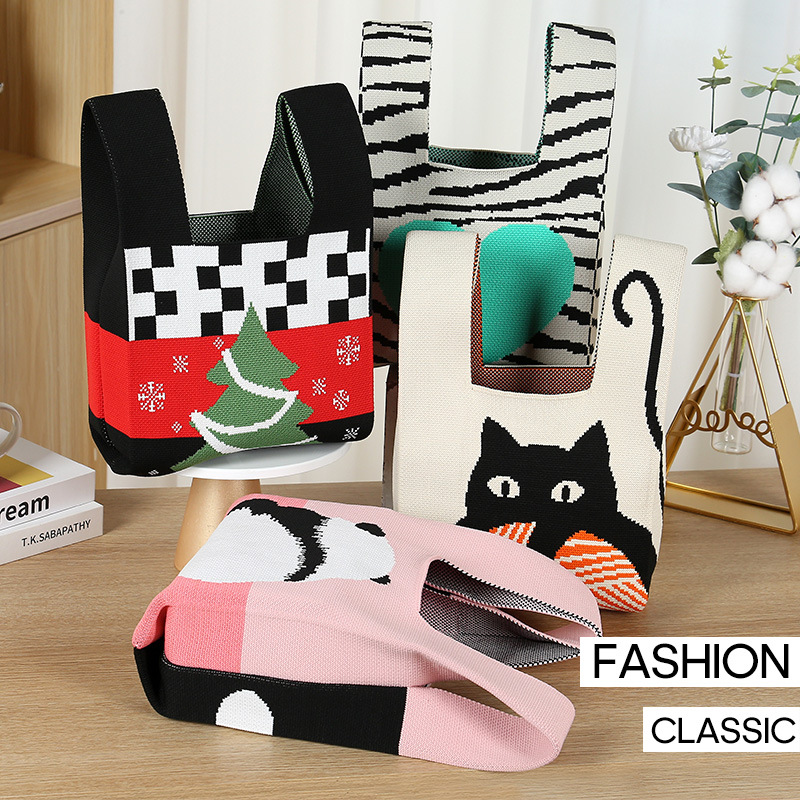 Factory Direct cross-border knitted bag portable knitted bag panda cartoon tote bag gift bag can be formulated