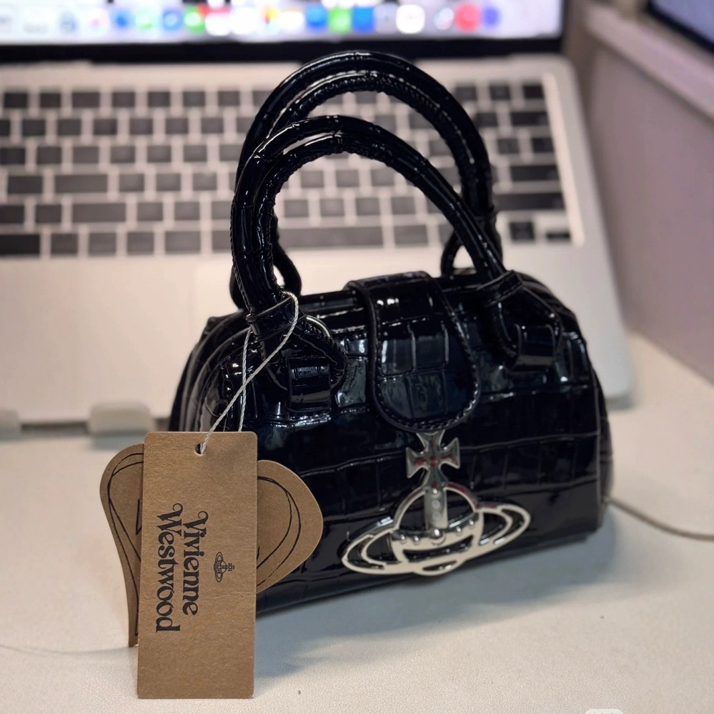 High Version Empress Dowager Saturn Hand Chain Mini Crossbody Bag Crocodile Pattern Patent Leather Clip Bag Vintage Small Waste Bag
