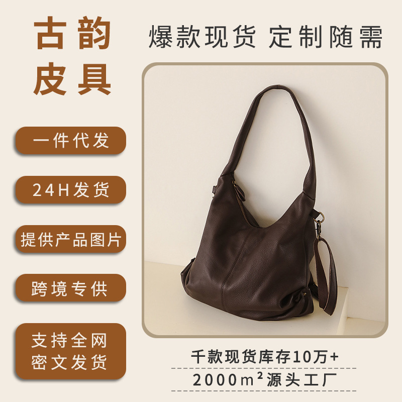 2025 New Retro Brown Commuter Tote Bag Large Capacity Single Shoulder Armpit Bag High-End Original Genuine Leather Bag