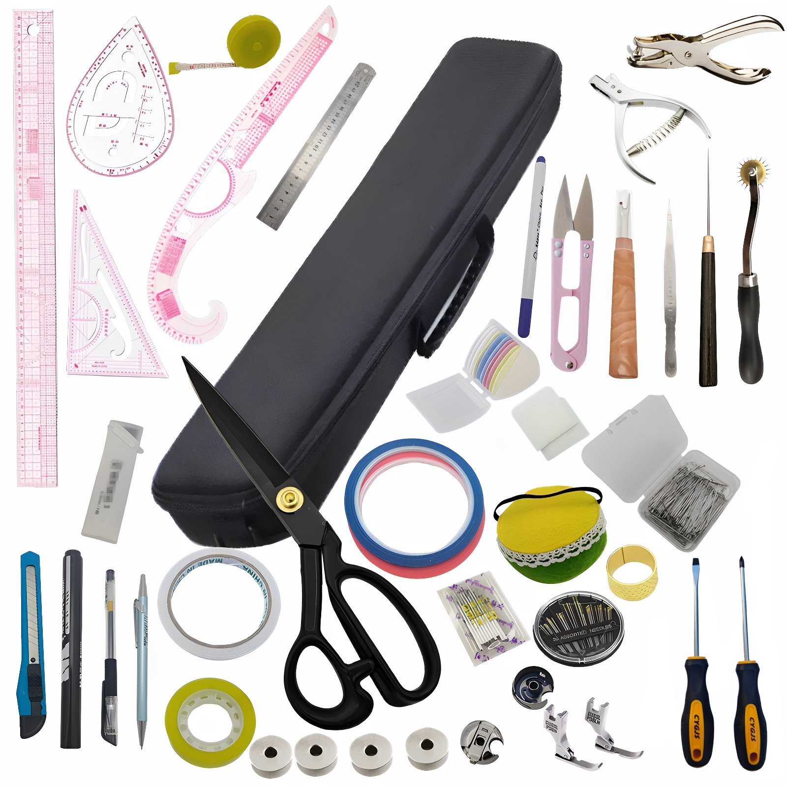 Clothing Craft Making Tool Kit for Students to Learn Draping and Design, Including Scissors, Pins, Awl, Ruler Set