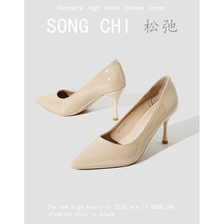 Women's Shoes 2025 New Nude Patent Leather Sexy Pointed Toe Stiletto Heels Simple Versatile Work Professional High Heels