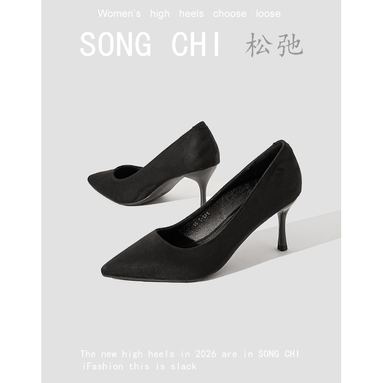 Relaxed Shoes~ Black Suede High-Heeled Shoes for Women, Comfortable 5cm Commuting Shoes, Pointed Toe Stiletto Heels, Interview Work Shoes