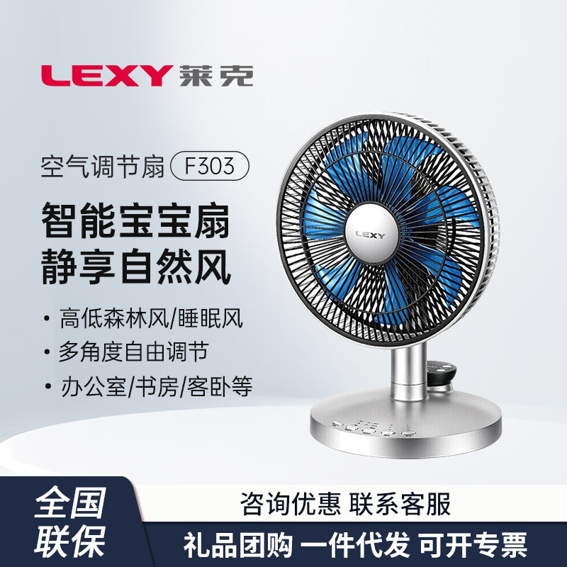 Lake Electric Fan Desk Fan F303 Home Office Light Sound Intelligent Air Circulation Fan Adjusting Turbine Convection Fan