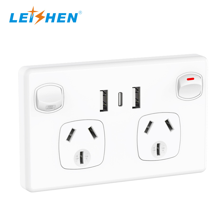 Australian Saa Certified Wall Socket 10A Double Switch Double Plug Double USB Mobile Phone Charging Panel Household Flame Retardant Safety