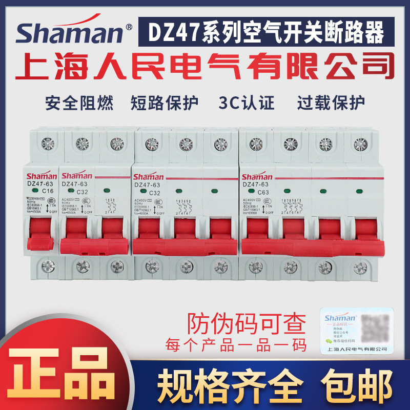 Shanghai people's electric DZ47-63 household 4P100A circuit breaker 3P32A three-phase Air switch 2P63A