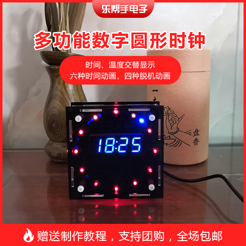 Electronic Clock DIY Kit 51 Microcontroller Light-Controlled Temperature Component Led Running Water Light DIY Production Parts Assembly
