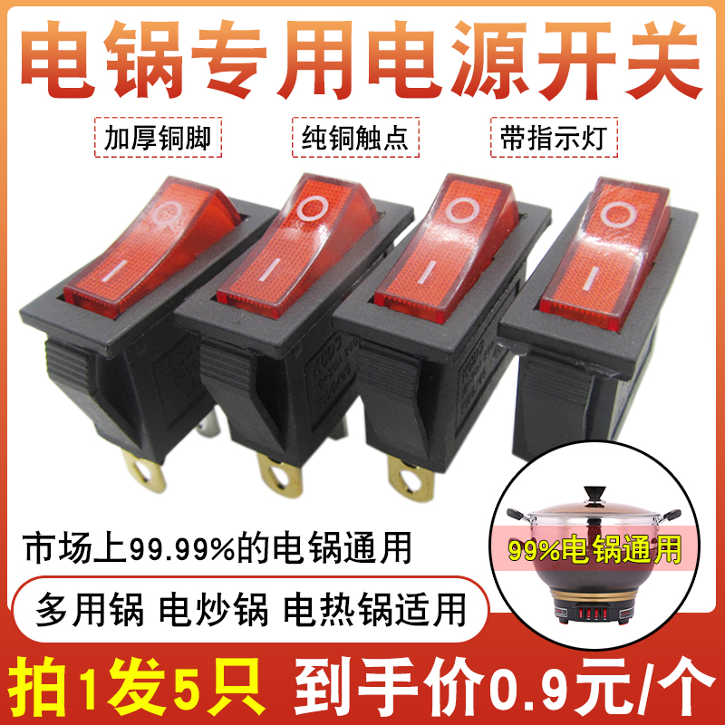 [5 Pack] Electric Wok Switch Accessories Neutral Multi-purpose Electric Pot Multi-purpose Pot Button Switch with Indicator Light