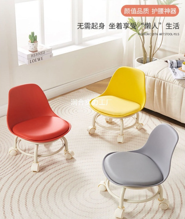 Universal Wheel Small Stool Household Pulley Low Stool with Wheels Small Round Stool Sofa Stool Small Chair Plastic Backrest
