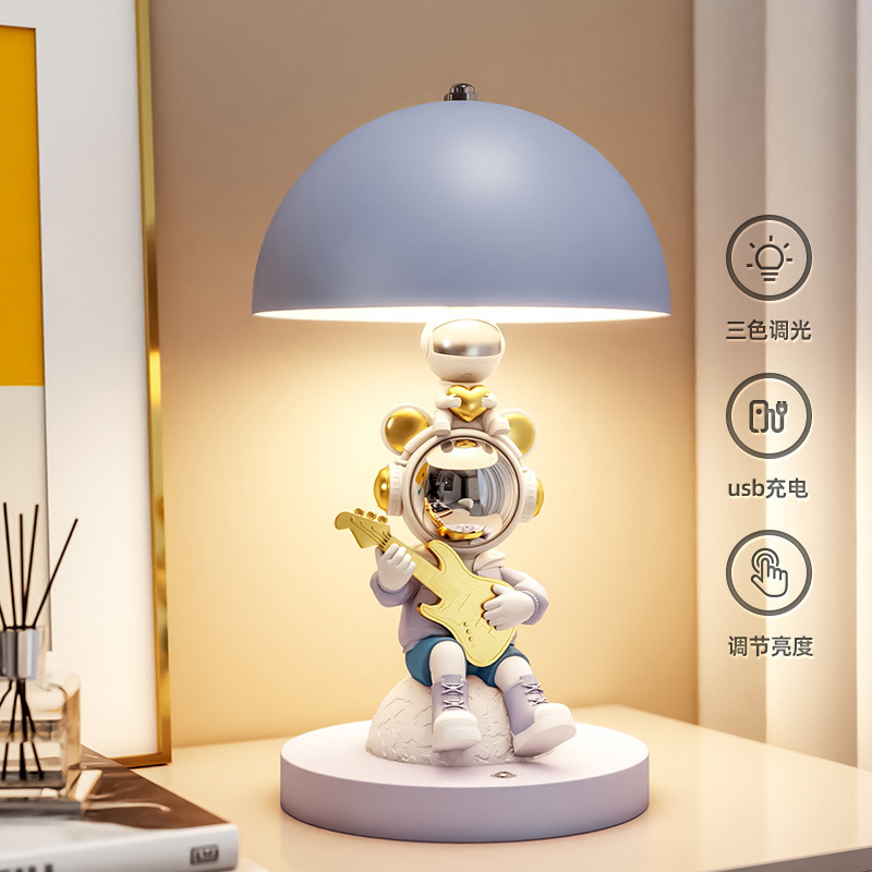 Playing Guitar Astronaut Astronaut Desktop Three-Color Small Table Lamp Room Bedside Table Decoration Ornaments Housewarming Decoration Gift