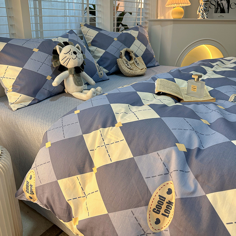Carillo Home Personalized Mixed-Style Plaid Striped Pure Cotton Four-Piece Bedding Set, Washed Cotton Full Cotton Fitted Sheet Style
