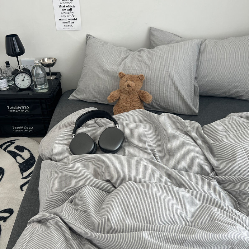 Pure Cotton Four-Piece Bedding Set, Washed 100% Cotton, Simple Striped Bedding, Student Dormitory Bed Sheet, Duvet Cover, Three-Piece Set 4