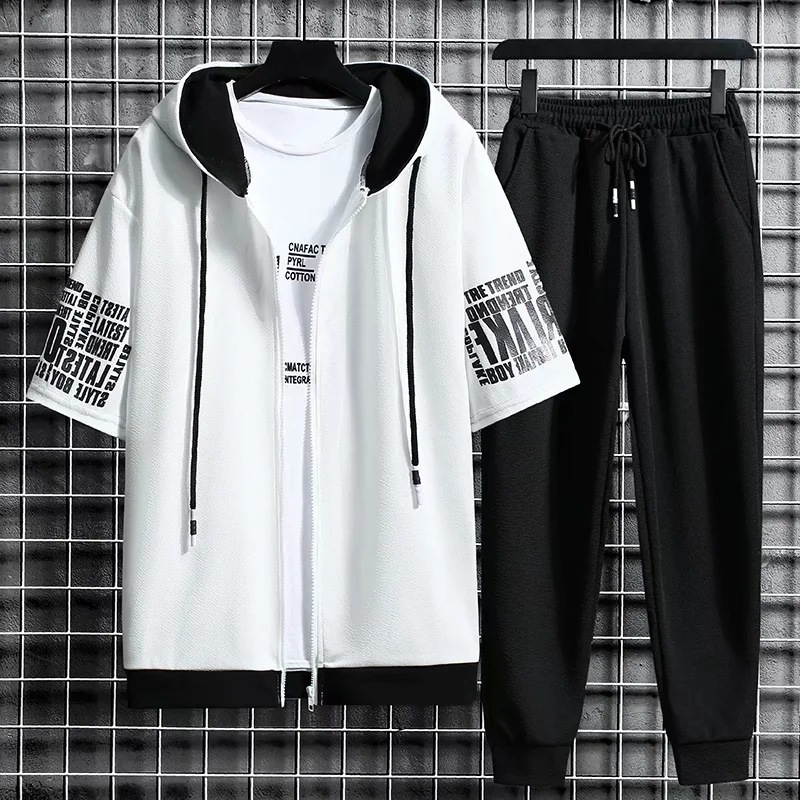 Sweater Suit Men's Spring and Autumn Long-sleeved Zipper Printed Jacket Fashionable Handsome Youth Casual Hooded Sportswear