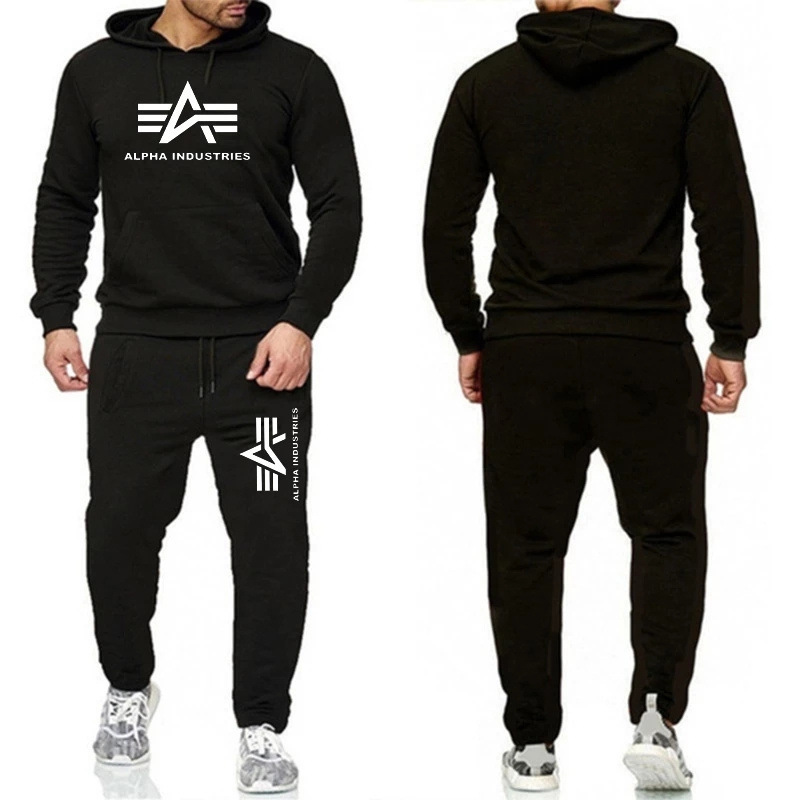 2023 men's casual suit thickened sweater logo printing two suit hooded sportswear foreign trade men's clothing