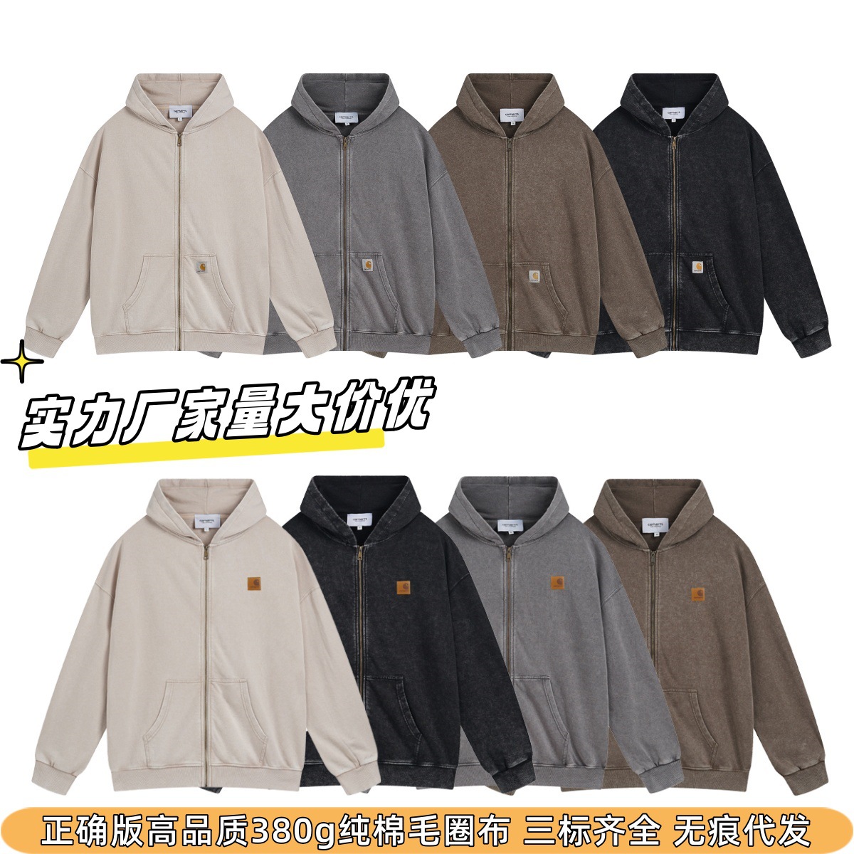 Cross-Border Foreign Trade Manufacturer Trendy Brand Carhartt Jacket Hoodie Zipper Carhartt Hooded Sweatshirt Long Sweatpants Suit