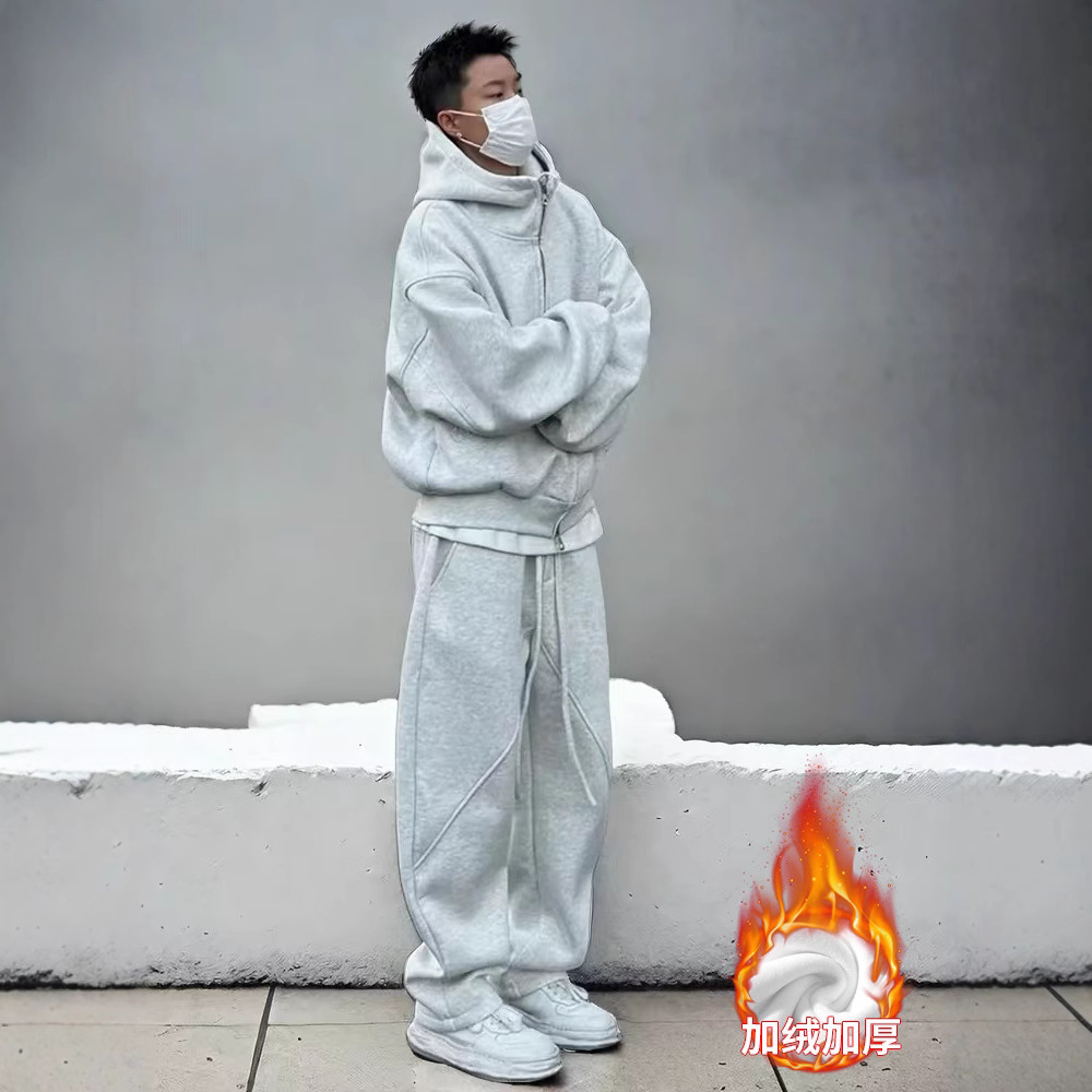 Men's Autumn and Winter fleece-lined Thickened Casual Sports suit Men's Fashion Brand Loose Hooded Jacket Two-piece Men's Clothing