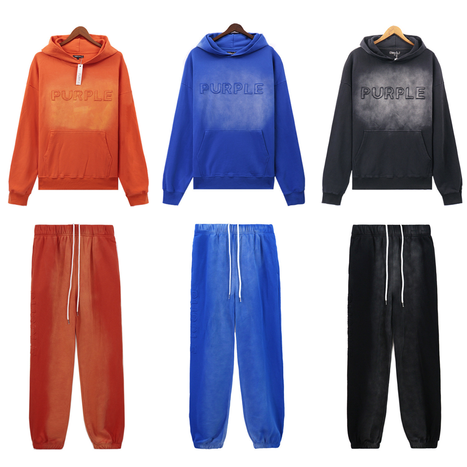 Real shot in stock Purple brand wash old silhouette loose hoodie machine embroidered logo hoodie suit