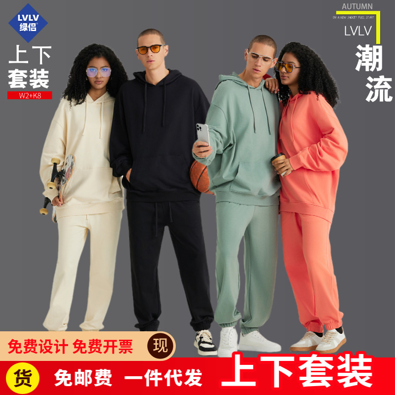 Men's sports 180g hooded solid color pullover suit two-piece hoodie and sweatshirt and sweatpants