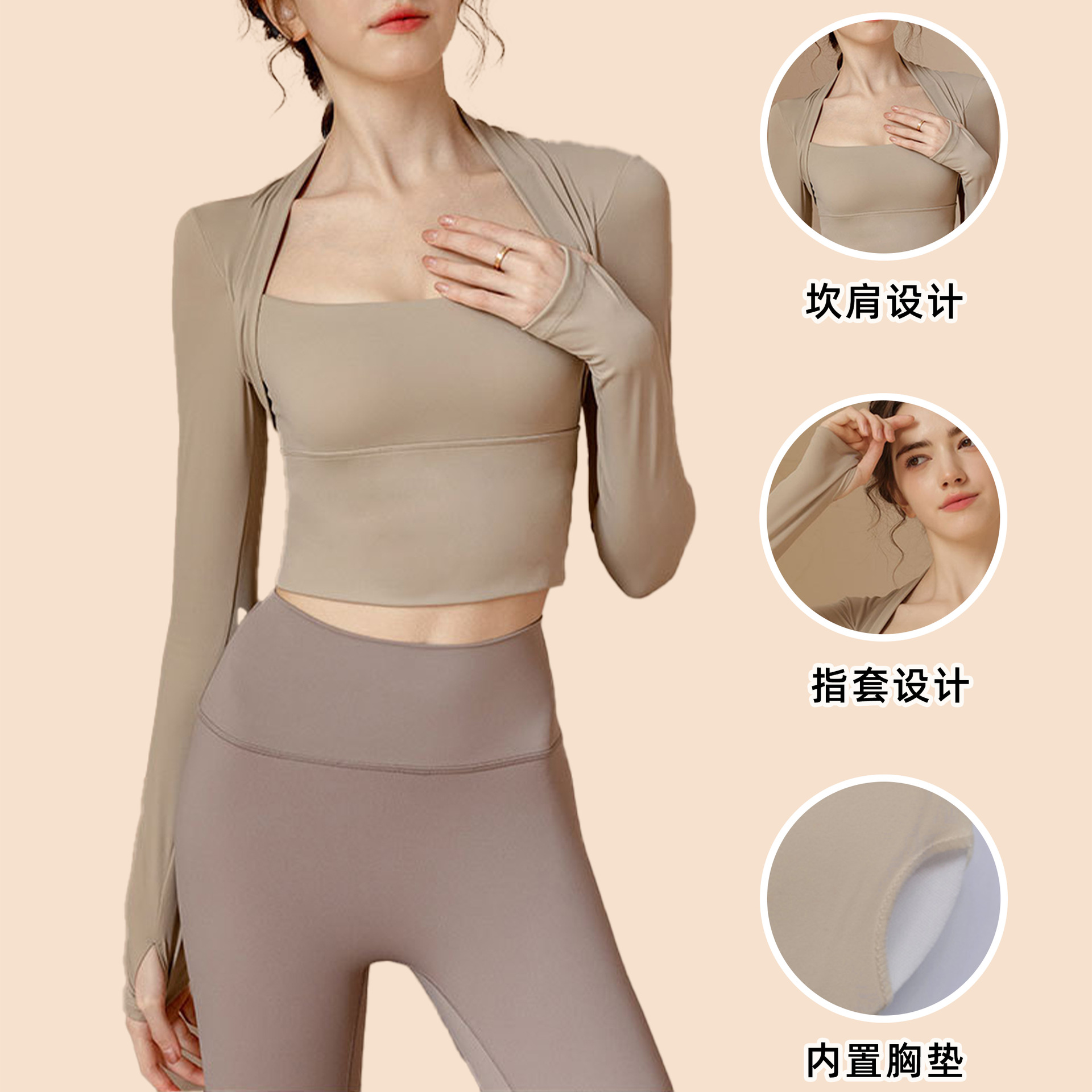Yoga Clothes with Chest Pads, Autumn and Winter Pilates Training Sports Tops, Running Fitness Clothes for Women, Can Be Worn Outside, High Elasticity