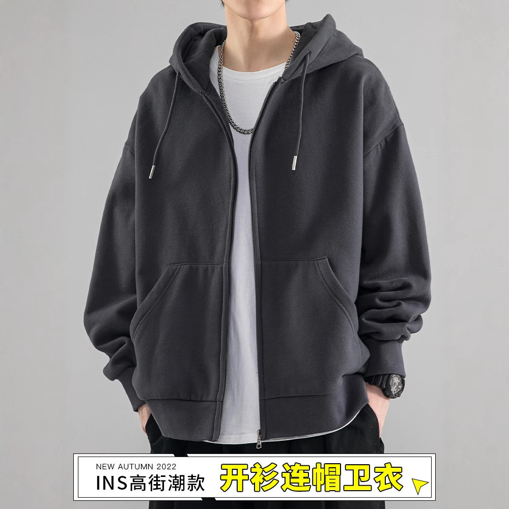 Heavy Weight Cardigan Sweatshirt Men's Spring & Fall Classic Sports Jacket Men's and Women's Pure Color Hooded Casual Loose Top Jacket