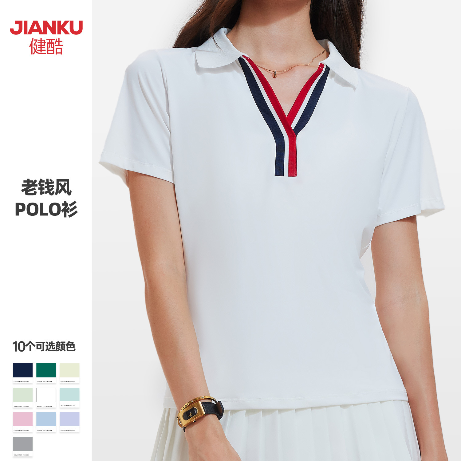 Cross-Border New Sports Short-Sleeved Women's Casual Loose V Neck Fitness T-Shirt Outdoor Quick-Drying Running Tennis Wear Polo Shirt