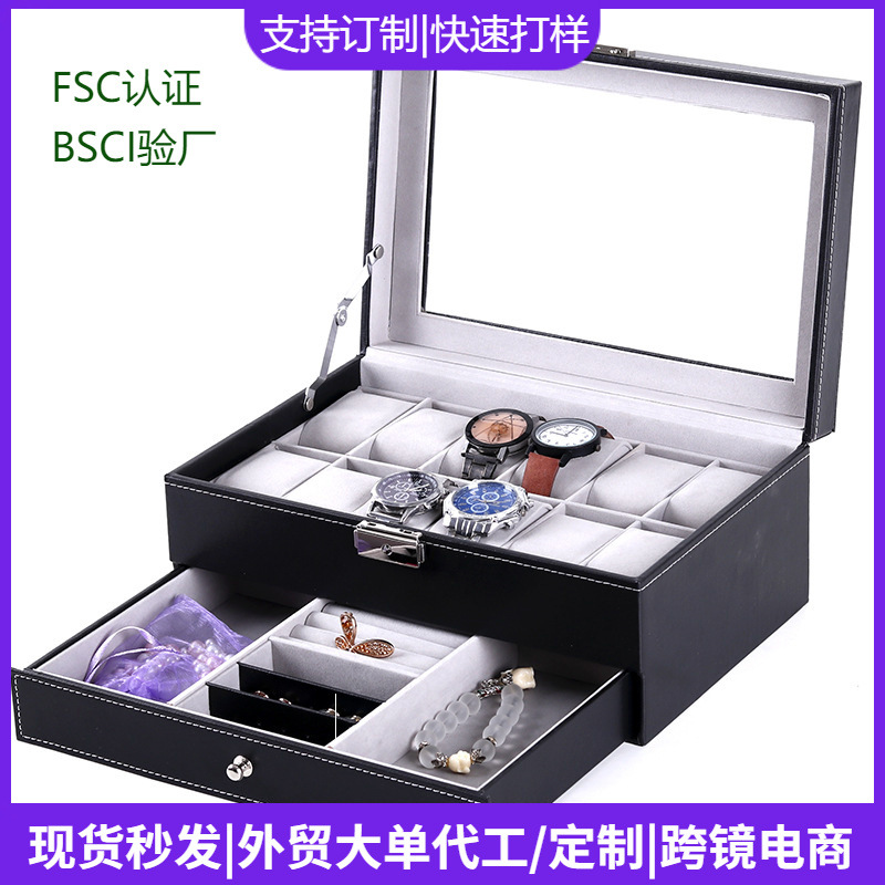 Qingyu packaging PU leather 12 watch box double jewelry box jewelry ring storage display box in stock