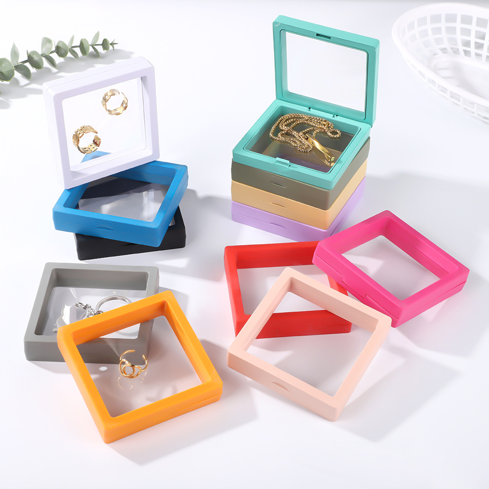 Color PE Film Suspension Box Simple Style Jewelry Display Box Bracelet Earrings Ring Transparent Packaging Square Box