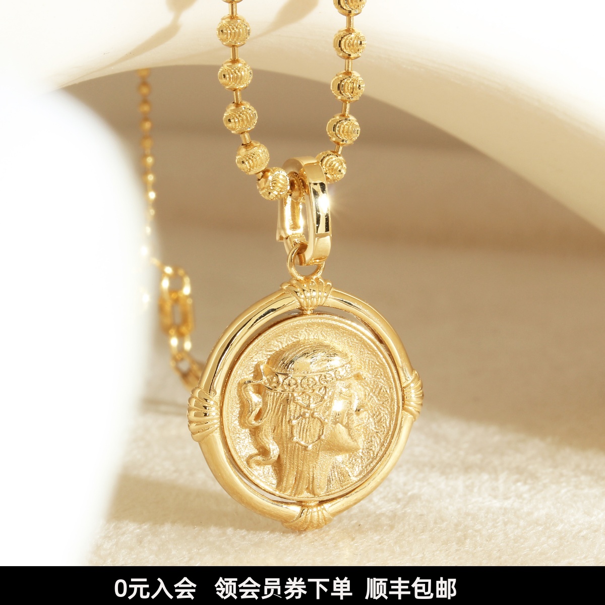 Chen Nuo Jewelry 18K Gold Queen Head Portrait Flip Pendant with Movable Clasp, Rotatable Gold Coin Pendant for Women