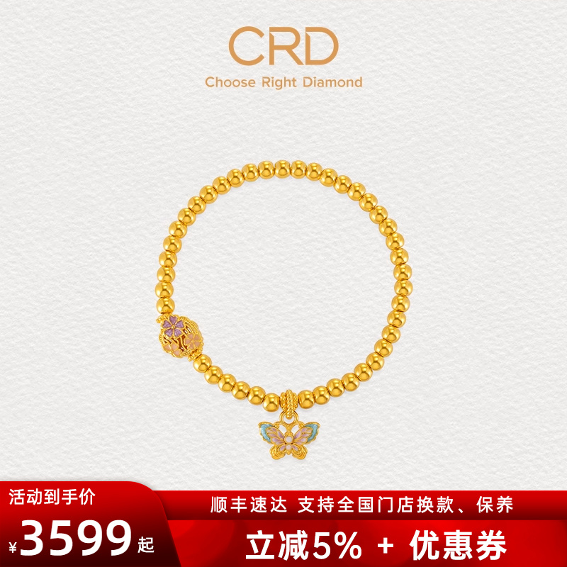 CRD Leidi Butterfly Gold Bracelet Colorful Flower Silk Beads Foot Gold Bracelet Transfer Beads Gold Beads Women's Three Gold Gifts