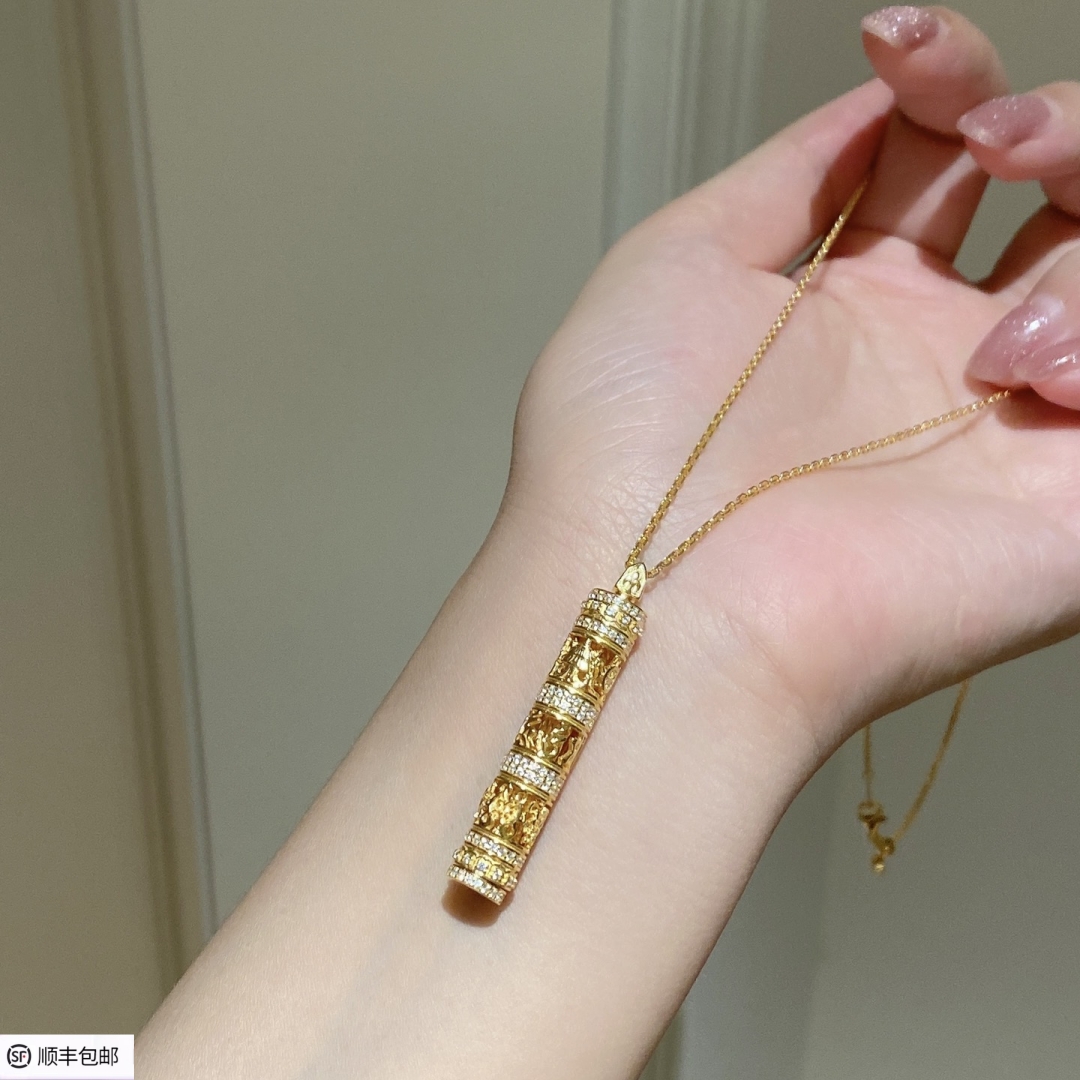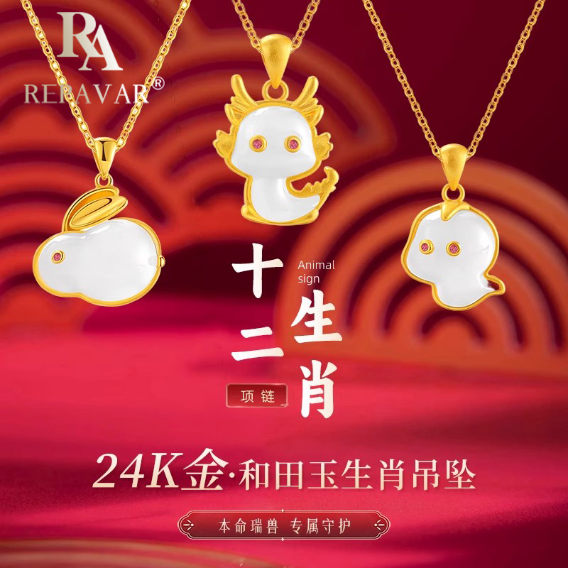 Pure Gold 24K Gold Light Luxury Hetian Jade Zodiac Pure Gold 999 Gold Necklace Women's Birthday Gift Double Eleven Gift