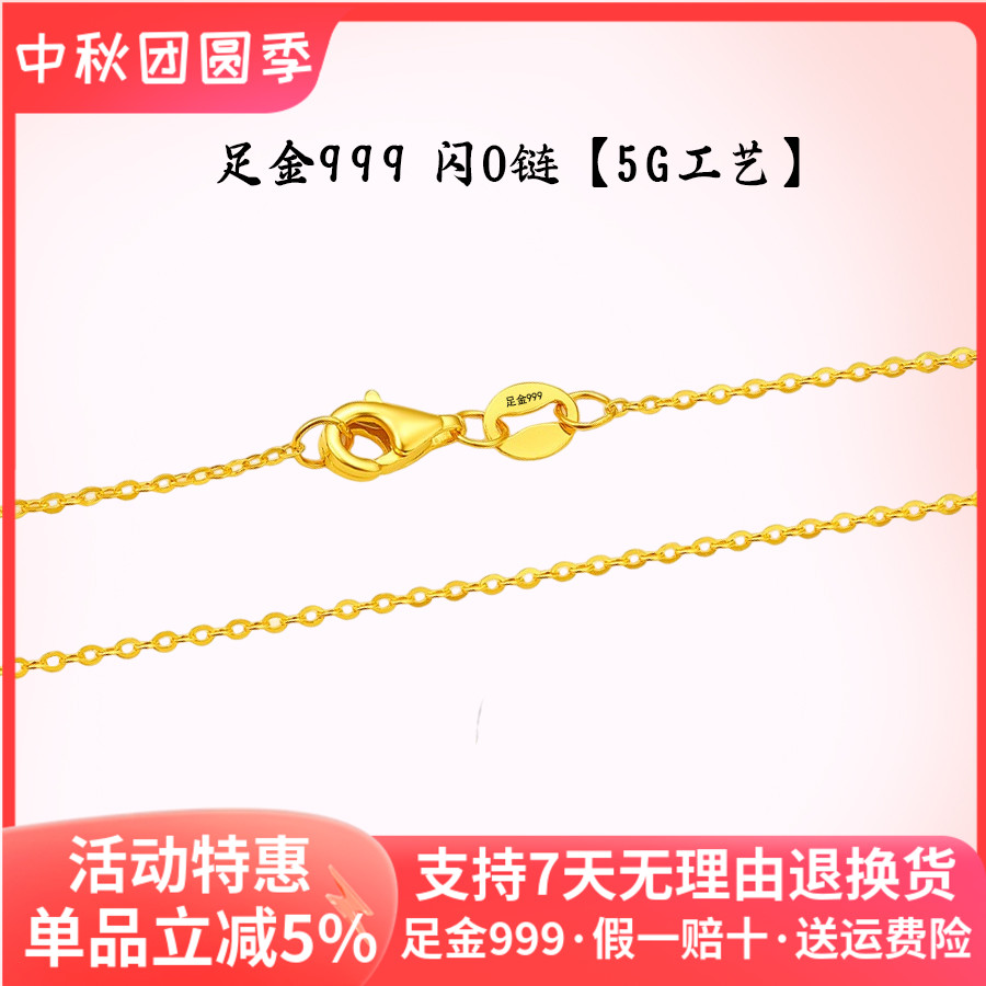Gold Necklace, Shiny O-Chain, Plain Chain, Women's Pure Gold 5g Craftsmanship Gold Jewelry, Versatile Clavicle Chain, Gold Necklace