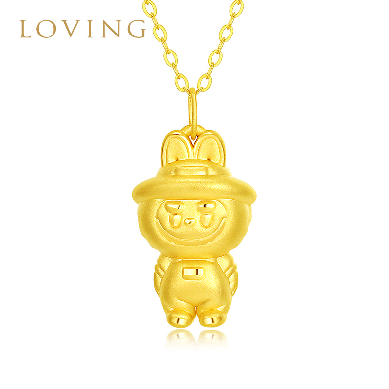 Loving Labubu Gold Pendant for Women 999 Pure Gold 3D Hard Gold Labubu Spring Wild at Home Necklace Set