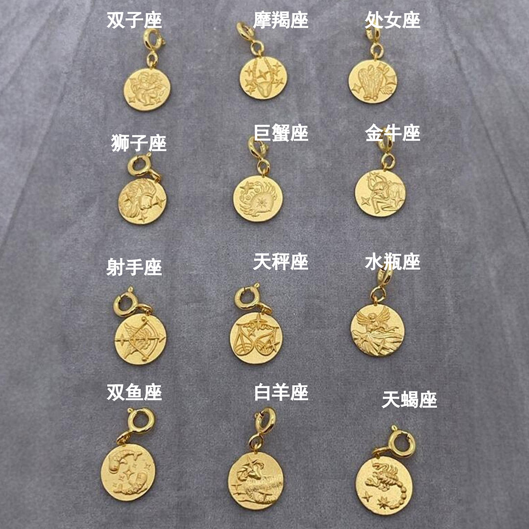 Meizi Jewelry 18K Gold Zodiac Pendant with Small Spring Clasp, Double-Sided, Can Be Hung with Pearls or Plain Chain