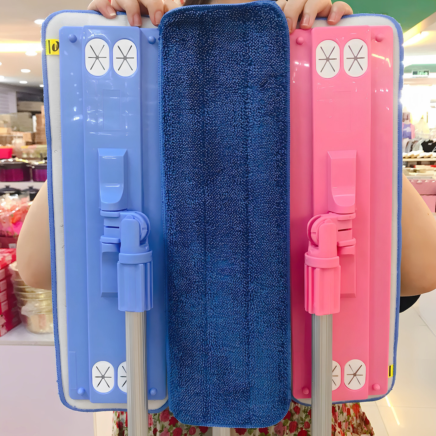 Korean Original Imported Mop, Pink and Blue Rotating Flat Mop for Lazy People, Household Use for Wiping Wooden Floors and Tiles