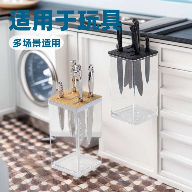 Doll House Japanese Transparent Knife Set Miniature Scene Model Accessories Kitchen Utensils Artificial Mini Knife Holder Set