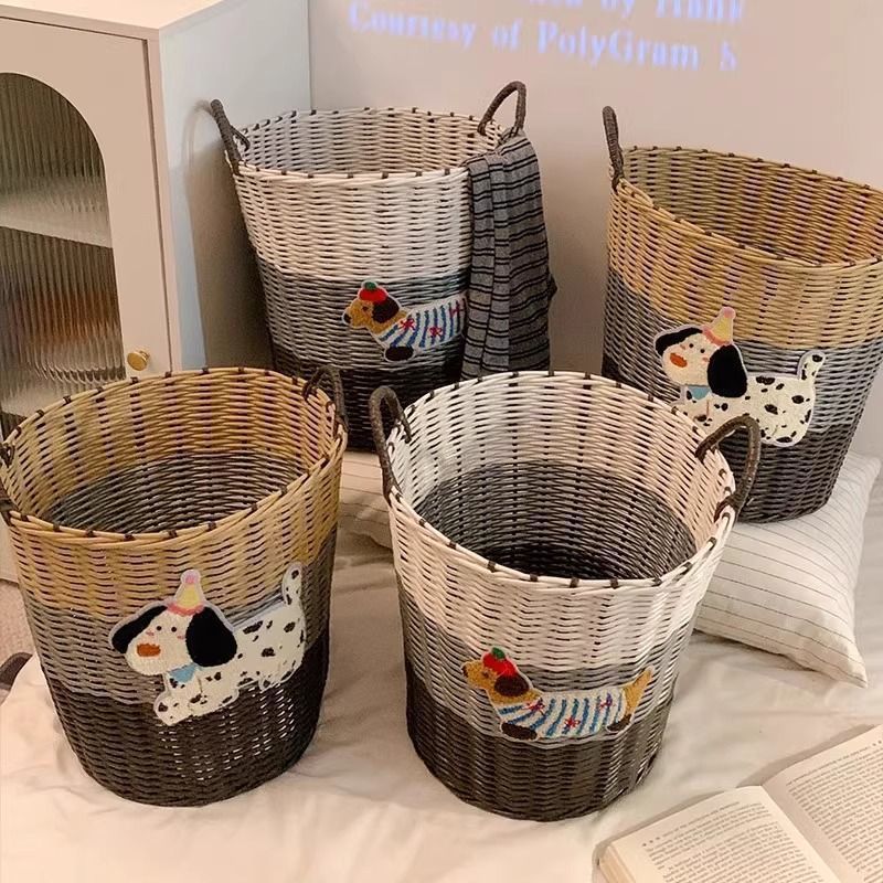 Dirty Clothes Basket Large Capacity Cute Puppy Imitation Rattan Dirty Clothes Basket Bathroom Toy Laundry Basket Woven Storage Basket