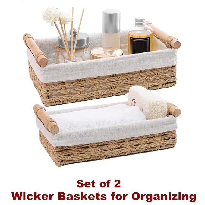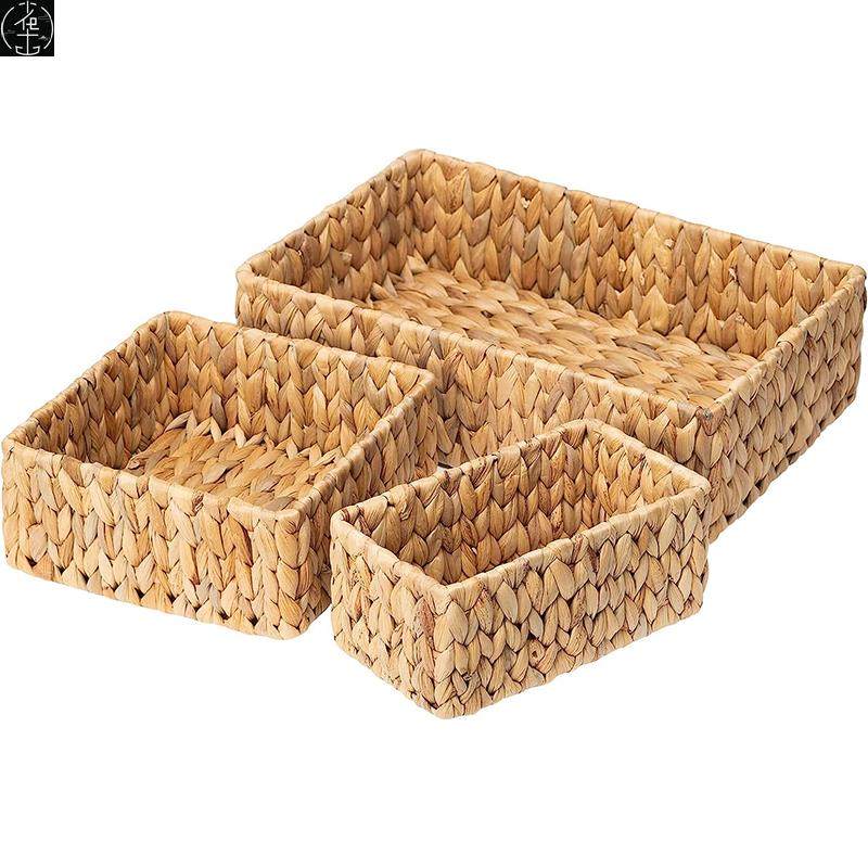 Storage Baskets Set Woven Straw Storage Basket Snack Storage Desktop Water Hyacinth