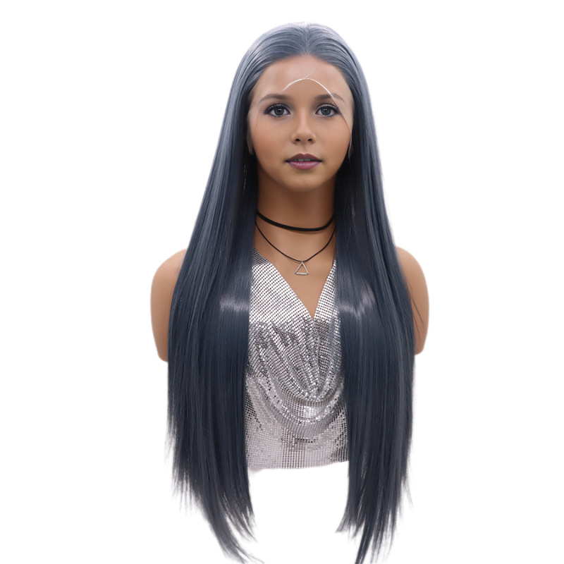 Cross-border foreign trade fashion long straight hair wig Africa hot-selling front lace lace middle straight hair chemical fiber headgear