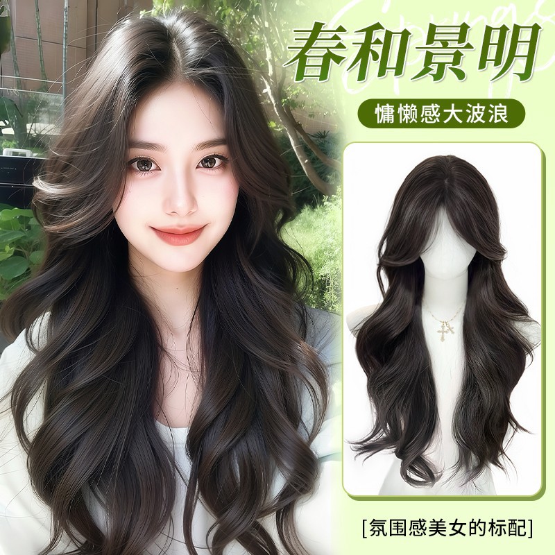 Full Wig for Women, Realistic Natural Middle Part, Large Waves, Long Curly Hair, Everyday Fluffy Hair Volume Increase, Full Wig