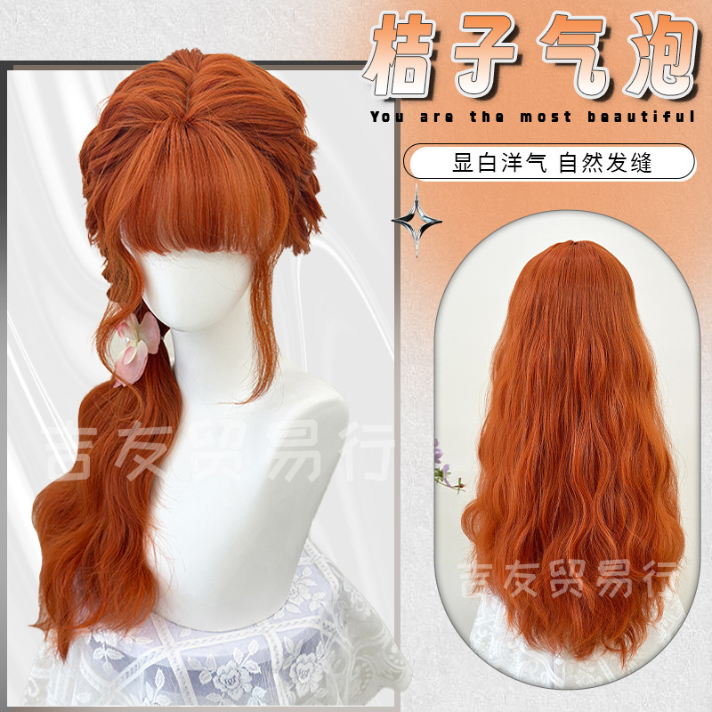 Jiyou Trading Company Wig Sweet Orange Long Curly Hair Daily Sweet Natural Fluffy Gentle Elegant Full Headgear Export