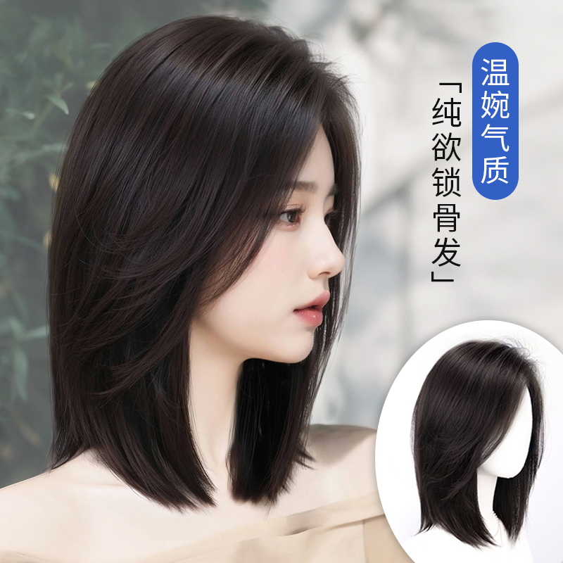 Ziqi Wig Women's Natural Artificial Hair High-level Mid-length Clavicle Hair Repair Facial Age-reducing Whole-top Short Hair Wig Cover