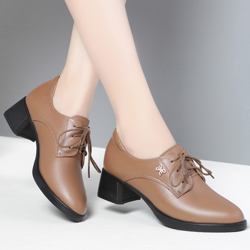 Spring 2023 New Large Women's Single Leather Shoes Middle Heel Thick Heel Driving Outing Maternity Shoes ZF212 Plus Size 42