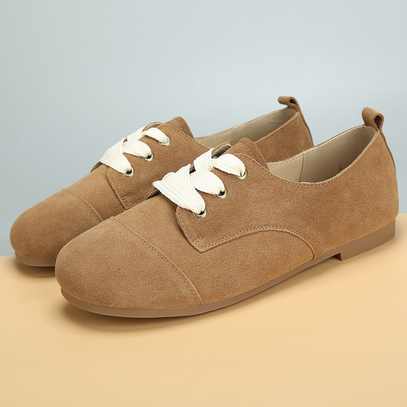 Processing Spring New Large Size Women's Shoes 41 to 43 Lace-Up Soft Sole Retro Casual Birkenstock Shoes Round Toe Large Flats