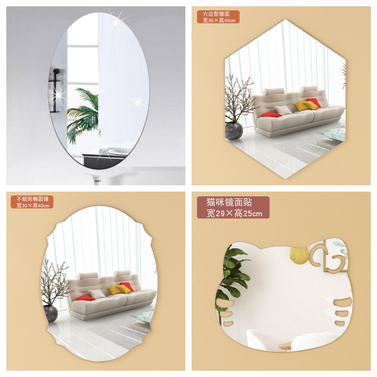 Cross-border mirror wall stickers self-adhesive oval acrylic mirror bathroom decorative mirror wall stickers non-fragile decorative mirror