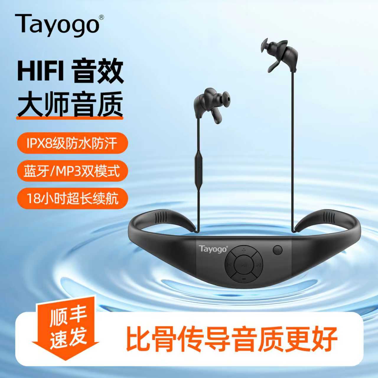 Tayogo Professional Swimming Headphones, In-Ear Waterproof, Dedicated Bluetooth Mp3 with Built-In Memory, Better Than Bone Conduction