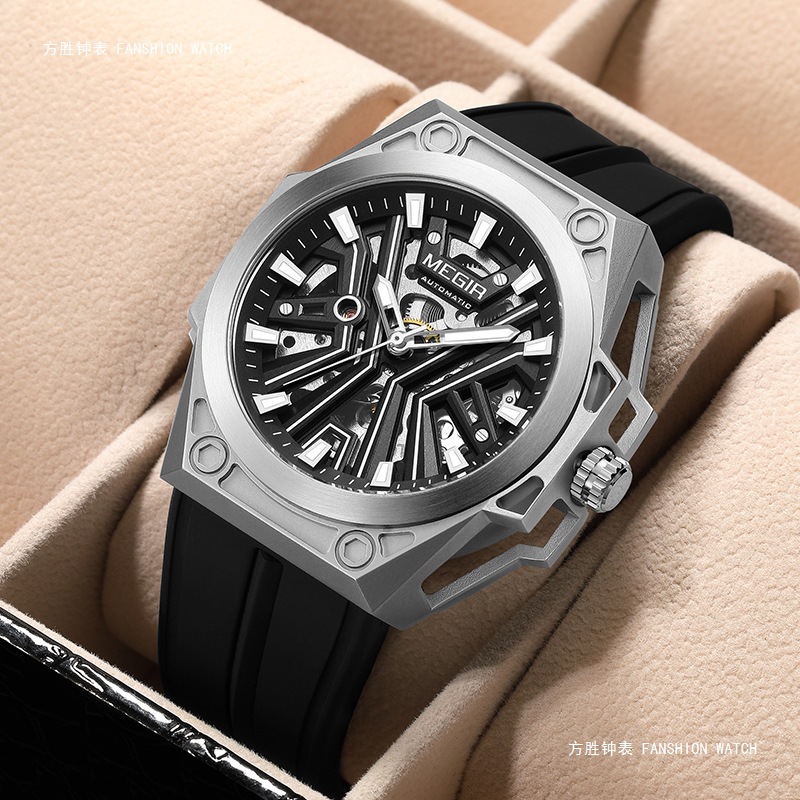 MEGIR Watch Stainless Steel Case genuine goods Automatic Mechanical Watch Hollow Luminous Sport Men's Waterproof Mechanical Watch