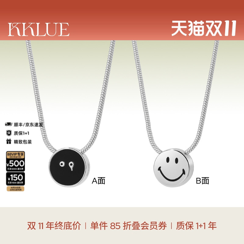Kkluexsmileyx Shimosaki Takashi Three-Party Collaboration Double-Sided Smiley Face Silver Necklace Multi-Wear Snake Bone Chain