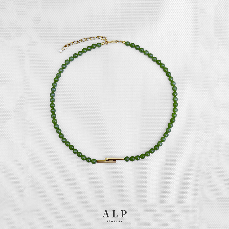 Official ALP JEWELRY Jade series Natural Hetian jade Jasper necklace 6mm round bead boutique clavicle chain