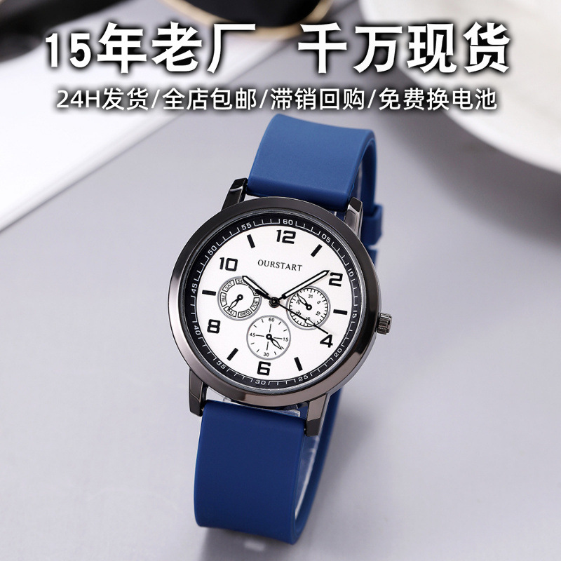 Spot Cross-Border Student Watch Men's Wholesale Casual Decoration Foreign Trade Student Simple Quartz Silicone Band Men's Watch